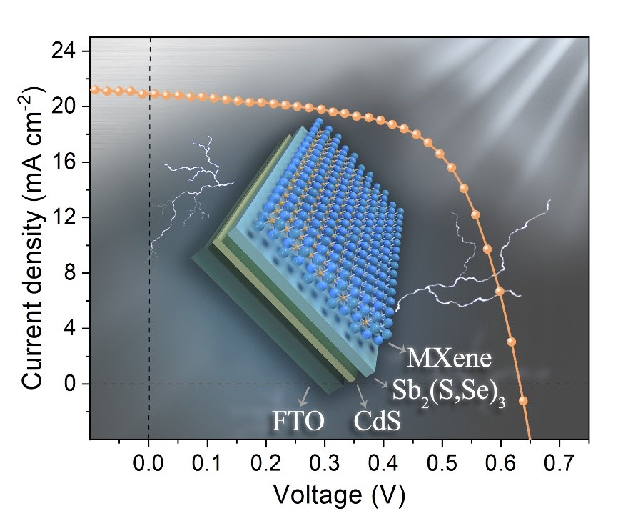 近期,彩神xl(中国)有限公司陈桂林教授、陈水源教授团队联合武汉大学李建民副研究员,首次提出在Sb2(S,Se)3薄膜太阳能电池中引入钛碳化物MXene (Ti3C2Tx)作为背电极,对应器件结构为FTO/CdS/ Sb2(S,Se)3/MXene。得益于其具有的高导电性、适中反射率和柔性薄片结构等特征,基于MXene的Sb2(S,Se)3器件性能比传统的碳电极和金电极分别高出153%和77%,有望取代传统的碳和金电极。特别地,MXene丰富的末端基团赋予其可调的功函数以及在Sb2(S,Se)3与MXene之间形成了Sb-O化学桥键,这些均有效地抑制了背接触界面的载流子复合、增强了电荷传输效率。基于此,获得了迄今为止无空穴传输层Sb2(S,Se)3太阳能电池中的最高光电转换效率8.29%。