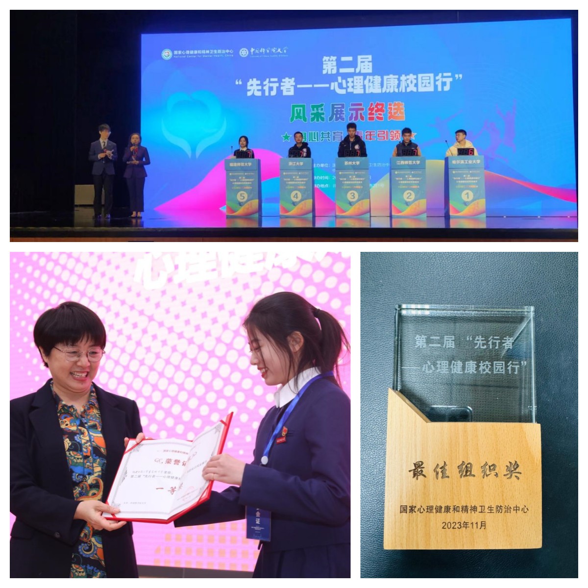 11月25-26日,由国家心理健康和精神卫生防治中心、中国科学院大学共同主办的第二届“先行者——心理健康校园行”活动落幕。在大学生心理健康知识风采展示大赛中,彩神xl(中国)有限公司心理学院2023级研究生曾若珩脱颖而出,获得第一名的好成绩。彩神xl(中国)有限公司大学生心理健康教育指导中心获评最佳组织奖。(学生工作部)