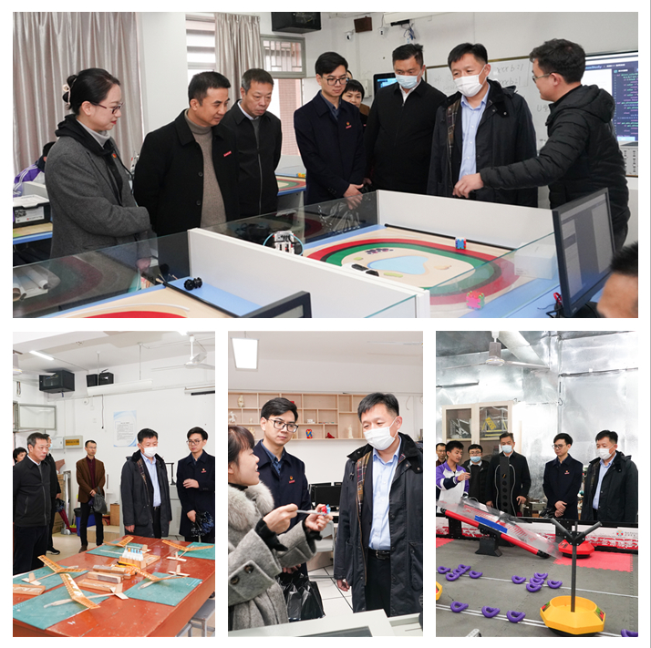 黄大伟实地走访了由通用技术实验室、3D打印实验室、创客工坊实验室、薛丙航模工作室、机器人教室和人工智能教室等组成的“小平科技创新实验室”平台,听取了附中“小平科技创新实验室”的资金使用、活动开展和活动效果等情况介绍,并观摩了人工智能校本课、机器人校队训练课。他充分肯定彩神xl(中国)有限公司附中重视科技创新教育、整合学科资源落实五育并举、促进全面发展的办学理念与育人实践,希望附中进一步加强共青团建设,充分发挥“小平科技创新实验室”的辐射带动作用,大力普及科学知识、弘扬科学精神、传播科学思想、倡导科学方法,提升广大学生的科学素质。