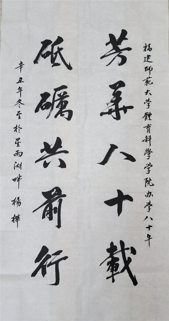 此外,北京体育大学原校长、党委书记杨桦教授为学院办学八十周年题词祝贺。北京体育大学、上海体育学院、武汉体育学院、华东师范大学、华南师范大学、苏州大学等几十所兄弟院校、合作单位和社会各界发来贺信、贺电。