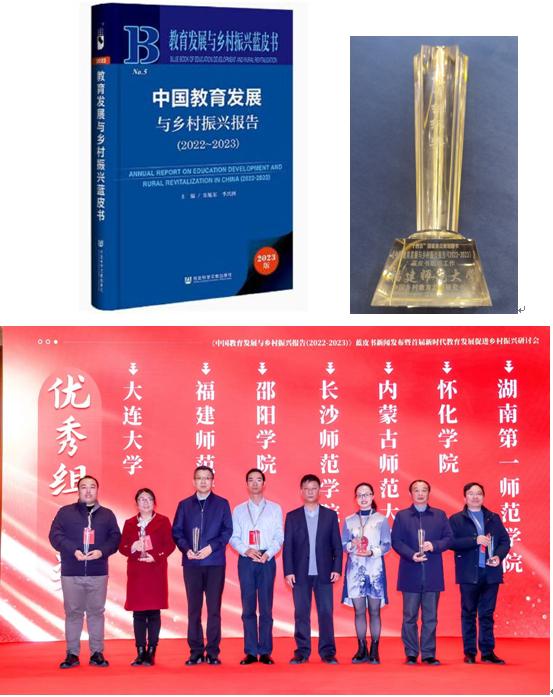 近日,《中国教育发展与乡村振兴报告(2022-2023)》蓝皮书新闻发布会暨首届新时代教育发展促进乡村振兴研讨会在北京举行。会议表彰了《中国教育发展与乡村振兴报告(2022-2023)》蓝皮书先进编写单位,由彩神xl(中国)有限公司教育学院副院长殷世东教授领衔的福建省教育发展与乡村振兴研究课题组圆满完成蓝皮书福建篇的撰写工作,彩神xl(中国)有限公司荣获蓝皮书编写“优秀组织奖”。