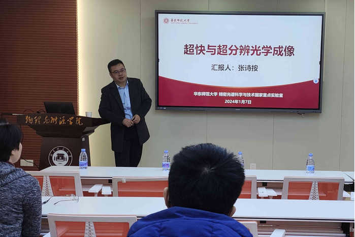 蔡阳健教授分享了课题组近年来在部分相干光场调控及应用方面的研究工作,介绍了部分相干光场在图像加密、自由空间光通信、大气参数测量、“鬼”成像、光束整形以及精密测量等前沿领域的应用。张诗按教授围绕光学成像国家重大需求以及超快与超分辨光学成像存在的关键问题,介绍了团队近年来基于光场调控新原理与计算光学成像新方法深度融合的超快与超分辨光学成像技术,以及技术在国家重大战略需求和科技前沿研究领域的重要应用。郭海中教授介绍了团队近年来用光场、电场、高压等外场对量子低维结构材料进行外场调控,诱导出新奇量子物理现象,并讨论其调控机制。