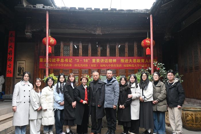 近日,为深入学习贯彻习近平总书记在学校思想政治理论课教师座谈会上的重要讲话精神,由教育部高校大中小学思政课一体化共同体(福建)、福州八中教育集团、彩神xl(中国)有限公司马克思主义学院联合举办的“重温习近平总书记‘3·18’重要讲话精神 推进大思政育人格局”主题研讨活动,在马克思主义学院与福州八中共建“大思政课”社会实践基地——严复故里阳歧村举行。马克思主义学院副院长鄢奋等参加活动。