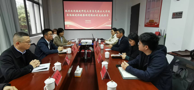 近日,马克思主义学院党委副书记杨君火带领学院辅导员前往福建省供销集团有限公司、福州水务集团有限公司开展访企拓岗促就业活动。福建省供销社经济发展处处长、福建供销集团董事长张若宇,福州水务集团有限公司党委副书记吴家赋及相关业务负责人参加了座谈。