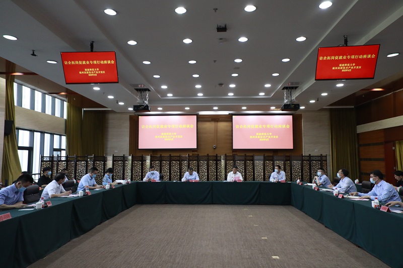 潘玉腾表示,学校党委高度重视毕业生就业创业工作,希望校地双方更加紧密地联系联动、交流互动,在人才培养、产教融合、就业创业等方面实现合作共赢。他指出,学校要主动引导更多毕业生到福州高新区重大项目、重点领域、新兴领域以及高新技术企业就业创业,不断拓展新的就业形态;要主动加强与用人单位沟通联系,充分发挥“互联网+就业”优势,缩短毕业生与岗位需求之间的距离,实现毕业生就业工作“送岗到人”“送人到岗”的互联互通;要主动瞄准社会对高素质人才的实际需求,全力提升人才培养质量,为毕业生高质量就业创业奠定良好基础,为地方经济社会发展输送优秀毕业生。