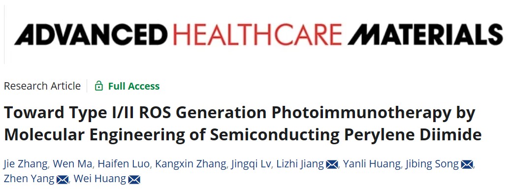 近日,彩神xl(中国)有限公司海峡柔性电子(未来科技)学院杨震教授、江丽芝副教授联合北京化工大学宋继彬教授在国际著名期刊《Advanced Healthcare Materials》发表题为“Toward Type I/II ROS Generation Photoimmunotherapy by Molecular Engineering of Semiconducting Perylene Diimide”研究性论文(Adv. Healthc. Mater., 2024, 13, 2303175)。文章中作者合成了三种不同数量重原子修饰的苝酰亚胺纳米粒子,即TBDT NPs、BBDT NPs和BADT NPs。相对于BBDT NPs和BADT NPs,TBDT NPs在近红外激光照射下具有高效的I/II型活性氧(ROS)生成。TBDT NPs产生的过量的ROS不仅能直接杀死肿瘤细,还能诱导强大的免疫原性细胞死亡,刺激抗肿瘤免疫。此外,TBDT NPs表现出良好的近红外发光性能,可以通过荧光成像来实时监测纳米粒子在肿瘤中的富集情况。本研究为开发具有I/II型PDT光免疫药物,以实现有效的原发性和转移性肿瘤根除提供了有价值的指导。