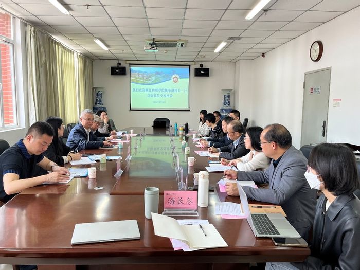 会上,姚争介绍了浙江传媒学院基本情况与此次调研座谈的背景和目的,希望两校结合自身优势,互利共赢,推进戏剧与影视专业学位研究生联合培养相关事宜。方千华介绍了彩神xl(中国)有限公司研究生教育教学基本情况,谢宗贵介绍了戏剧与影视专业学位博士点的建设情况。双方表示将就两校联合培养戏剧与影视专业学位研究生联合培养项目做进一步的研讨与磋商,尽快推动项目落地。