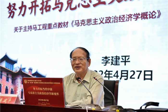 报告会上,李建平教授阐述了《马克思主义政治经济学概论》第二版修订工作的时代背景和重要意义,对教材修订的基本原则、结构内容的调整与变动作出了详细的介绍,讲述修订该书的艰辛历程:经过20位专家1000天的不懈努力,使该教材充分反映马克思主义中国化的最新成果,充分反映中国特色社会主义的丰富实践,充分反映本学科领域的最新学术成果。李建平教授指出,该教材努力实现政治性、学术性、实践性的高度统一。学好该教材要将习近平新时代中国特色社会主义经济思想学深、学透,教师要深入学习领会习近平总书记在中国人民大学考察重要讲话精神,提升自身思政水平,更好的运用到教学当中。