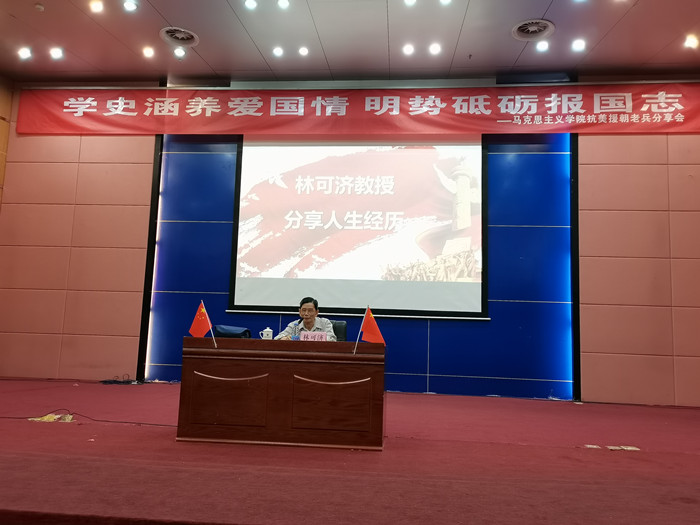 为引导学生深入学习“四史”,弘扬伟大抗美援朝精神,11月19日,马克思主义学院邀请原马列教研部主任、抗美援朝老兵林可济教授参加“学史涵养爱国情,明势砥砺报国志”主题团日活动,与师生分享抗美援朝故事和人生奋斗经历。马克思主义学院党委副书记阮传瞰、全体辅导员及彩神xl(中国)有限公司退伍兵协会代表参加活动。
