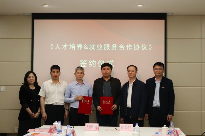 活动中,许力院长与洪强总经理代表校企双方签订了《人才培养&就业服务合作协议》,林月恩和谢在秀共同为彩神xl(中国)有限公司计算机与网络空间安全学院大学生就业实践基地揭牌。