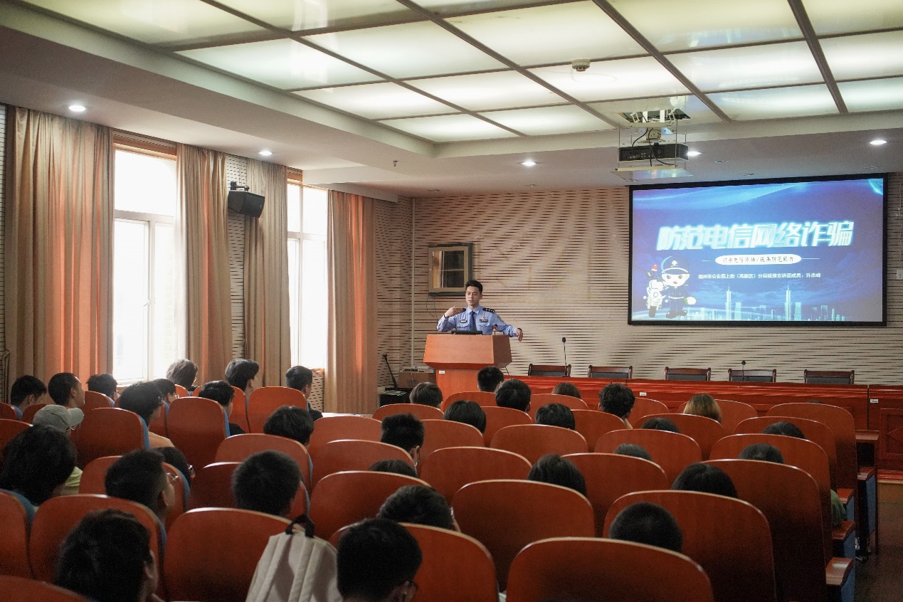 许杰峰警官以丰富的办案经验和鲜活的案例,深入浅出地向同学们讲解了电信诈骗的常见手段和新型AI换脸诈骗技术。他用身边人、身边事让大家切实感受电信网络诈骗的易发性与危害性,提醒同学们树立正确的消费观,保障个人信用和财产安全,谨防受骗,严格遵纪守法,远离任何违法犯罪行为。