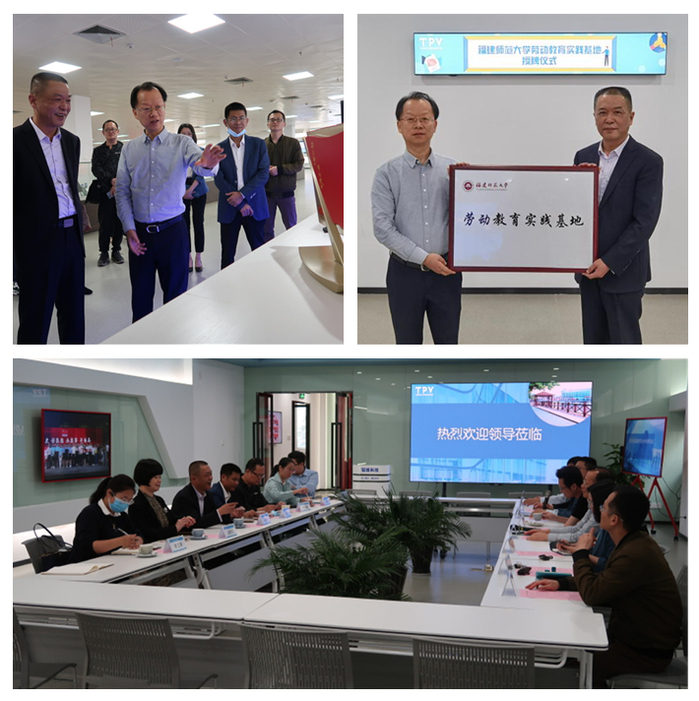 近日,公共管理学院党委书记林建荣、副书记蓝凯仔、工会主席卢红飚、部分专业负责人及毕业班辅导员前往冠捷电子科技(福建)有限公司开展访企拓岗促就业专项活动,参观企业党群活动中心,并举行劳动教育实践基地授牌仪式,与彩神xl(中国)有限公司校友、福清融侨经济开发区党工委书记林捷,冠捷电子党委书记、总经理陈旭彪,副书记、研发经理吴添福等管理人员座谈交流。