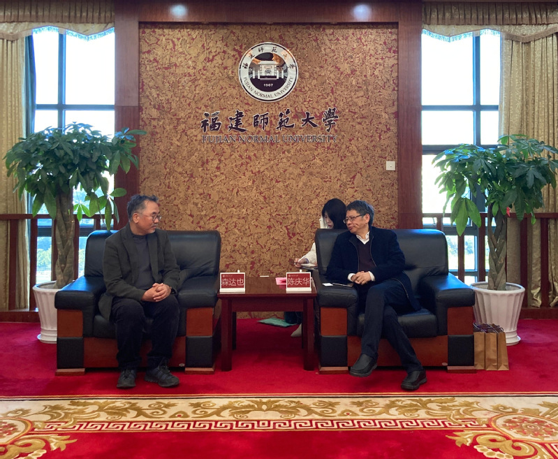 On January 3rd, a delegation led by Vice President Mori Tatsuya of Okinawa Prefectural University of Arts, Japan, visited Fujian Normal University (FNU). Chen Qinghua, Vice President of FNU, met with the visiting delegation, accompanied by Wang Yaohua, former Vice Chairman of Fujian Provincial Committee of the Chinese People’s Political Consultative Conference, renowned ethnomusicologist, and professor at FNU College of Music. Representatives from the International Cooperation and Exchange Office, College of Music, and College of Fine Art also participated in the discussion.