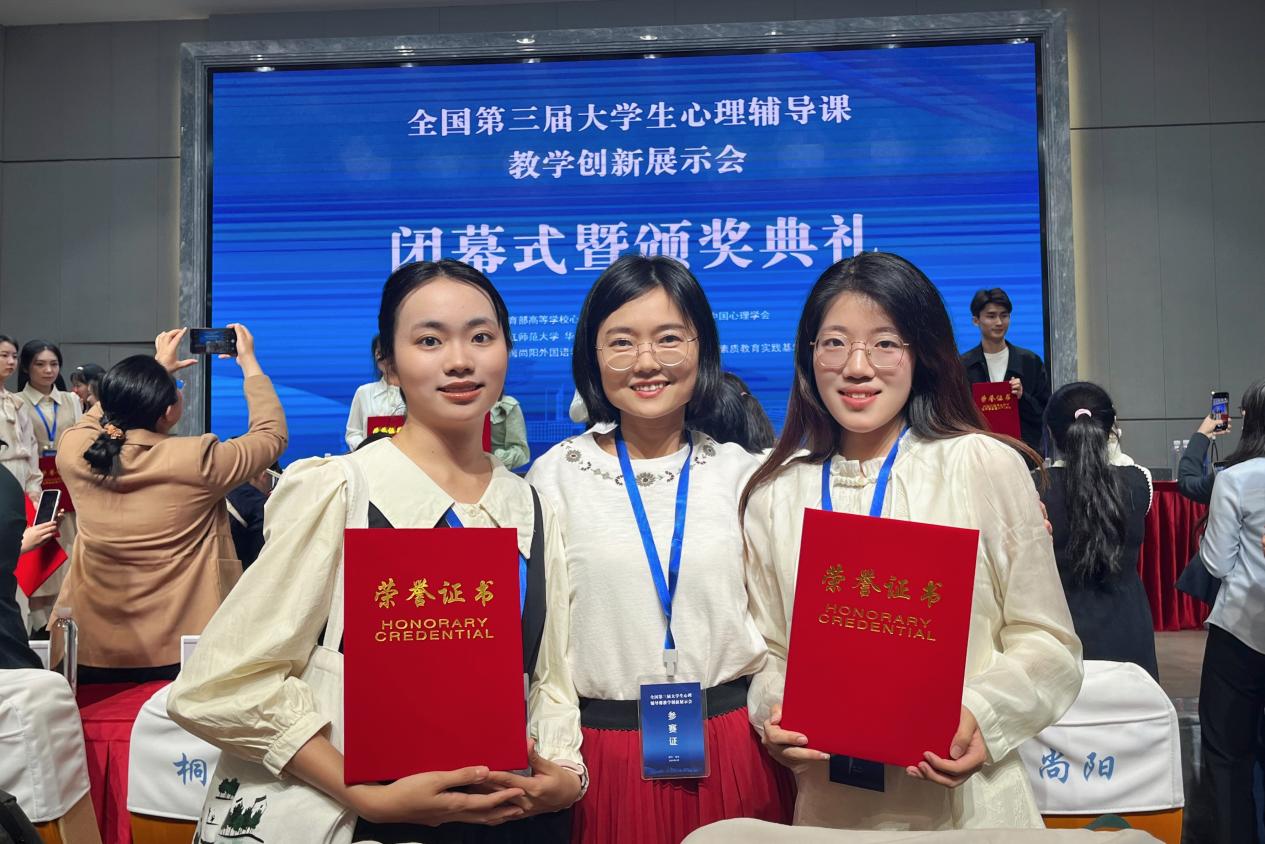 近日,由教育部高等学校心理学类专业教学指导委员会、中国心理学会主办的全国第三届大学生心理辅导课教学创新展示会在浙江桐乡举办。经学院推荐、初赛评审,彩神xl(中国)有限公司心理学院2021级本科生缪文佳、陈科蓉从全国156所高校的288名参赛选手中脱颖而出,入围决赛。经过两天激烈角逐,两位选手在说课展示、现场授课等环节中表现突出,缪文佳荣获特等奖,陈科蓉荣获一等奖(指导老师:杨丽娴、相晓庆)。(心理学院)