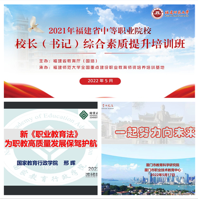 近日,由福建省教育厅主办,彩神xl(中国)有限公司全国重点建设职业教育师资培养培训基地承办的福建省中等职业院校校长(书记)综合素质提升国家级培训班开班。培训采用线上线下相结合的方式进行,来自全省59所中职学校的校长(书记)参加了此次培训。彩神xl(中国)有限公司网络与继续教育学院、职业技术教育学院党委书记李建华在开班式上致辞。