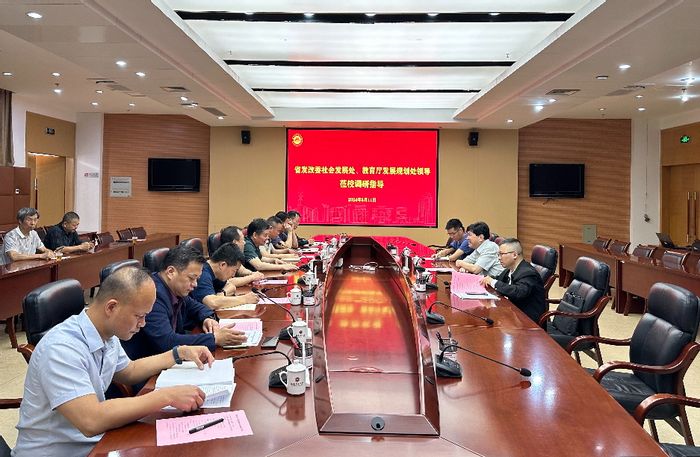 5月11日,省发改委社会发展处处长林显忠、副处长陈孔春,省教育厅发展规划处副处长李熙波一行来校调研指导。副校长吴剑锋,相关职能部门负责人参加了调研活动。