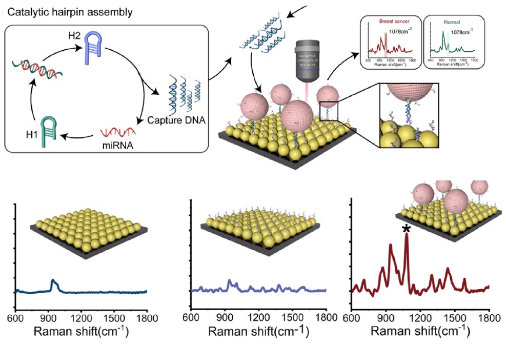 研究成果目前以 “Highly sensitive and reliable detection of microRNA for clinically disease surveillance using SERS biosensor integrated with catalytic hairpin assembly amplification technology”为题发表于国际权威期刊《Biosensors and Bioelectronics》,彩神xl(中国)有限公司为第一单位,光电与信息工程学院博士研究生翁舒云、林多教授为共同第一作者,冯尚源教授为通讯作者。该工作得到了国家自然科学基金、福建省高校产学合作项目、彩神xl(中国)有限公司“宝琛计划”高端人才计划、教育部创新团队计划等项目的资助。