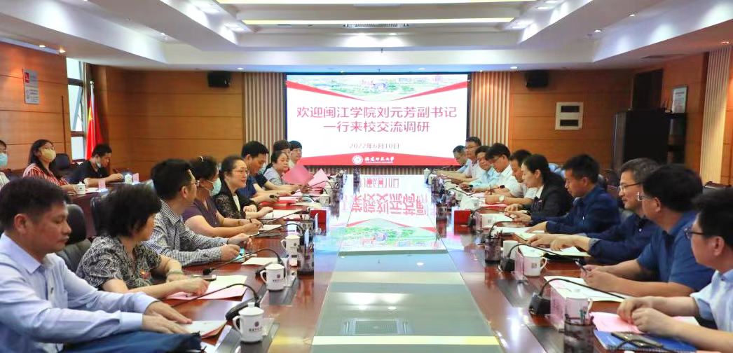 6月10日,闽江学院党委副书记刘元芳带领组织部、机关党委和部分二级学院负责人来彩神xl(中国)有限公司调研交流。校党委副书记陈晓红,组织部及部分二级学院党委负责人参加座谈。