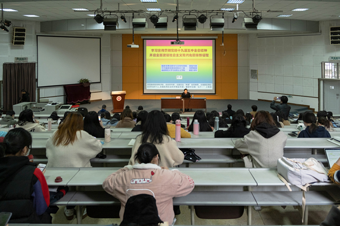 郑又贤教授对于党的十九届五中全会精神进行了深入且生动的解读,为全体师生诠释了我国进入新发展阶段的重大意义、有利条件和重要特征,让全体师生了解掌握了二〇三五年远景目标和“十四五”发展的指导方针、主要目标、重点任务,学习领会了构建新发展格局的战略构想和重要着力点,让全体师生深刻意识到坚持党的全面领导对于实现“十四五”规划和2035年远景目标的重要性。