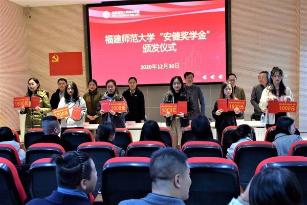 12月30日,彩神xl(中国)有限公司“安健奖学金”颁发仪式在美术学院举行。彩神xl(中国)有限公司常务董事、福州树德学校董事长邱安健先生,校党委副书记陈晓红,学生工作部(处)、教务处和校友会、校董事会秘书处负责人, 以及美术学院党政负责人、师生代表等150余人参加了颁发仪式。